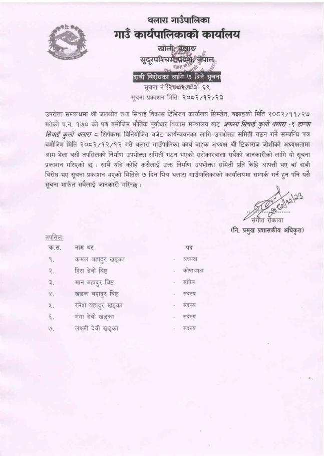 गाउँपालिकाका अन्य निर्णयहरु