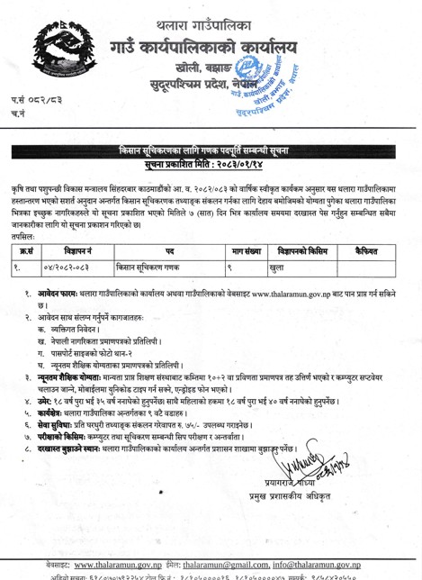 किसान सूचिकरणका लागि गणक पदपूर्ति सम्बन्धी सूचना।