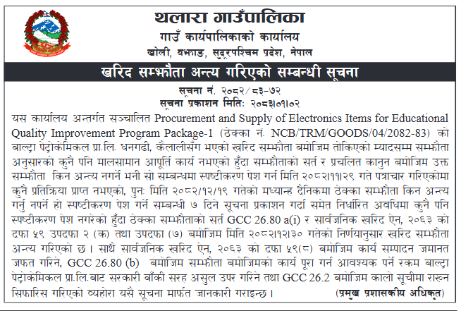 खरिद सम्झौता किन अन्त्य नगर्ने सम्बन्धी सूचना ।