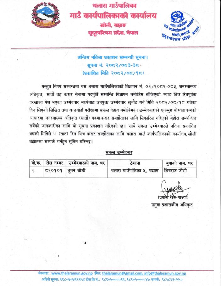 » जनस्वास्थ्य अधिकृत (सातौं तह) को अन्तिम नतिजा प्रकाशन सम्बन्धी सूचना।