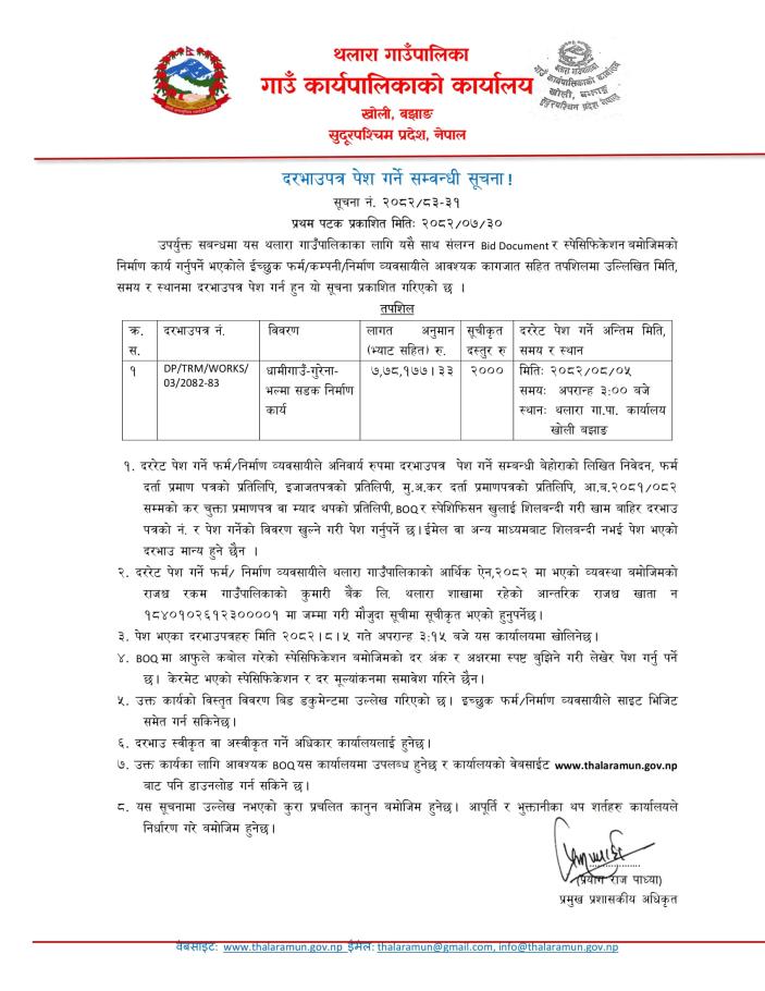 दरभाउपत्र पेश गर्ने सम्बन्धमा । (धामीगाउँ गुरेना भल्मा सडक)