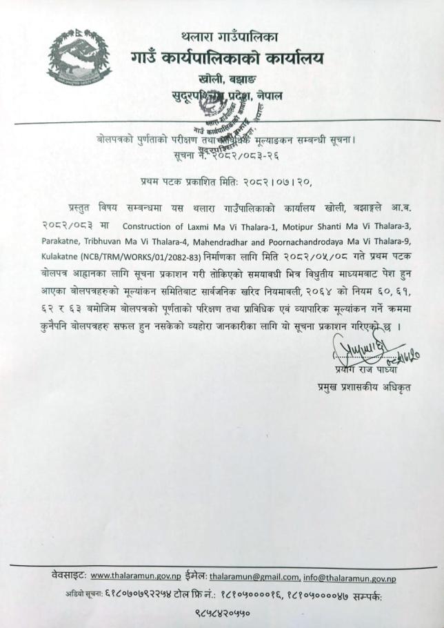 » बोलपत्रको प्राविधिक मूल्याङ्कन सम्बन्धी सूचना ।