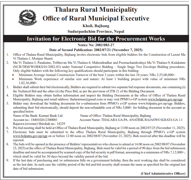 » बोलपत्र आह्वानको सूचना । (विद्यालय भवन निर्माण)