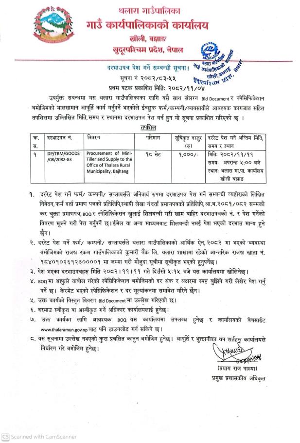 सूचना नं ५५ मिनिटिलर आपूर्तिका लागि दरभाउपत्र पेश गर्ने सम्बन्धमा ।