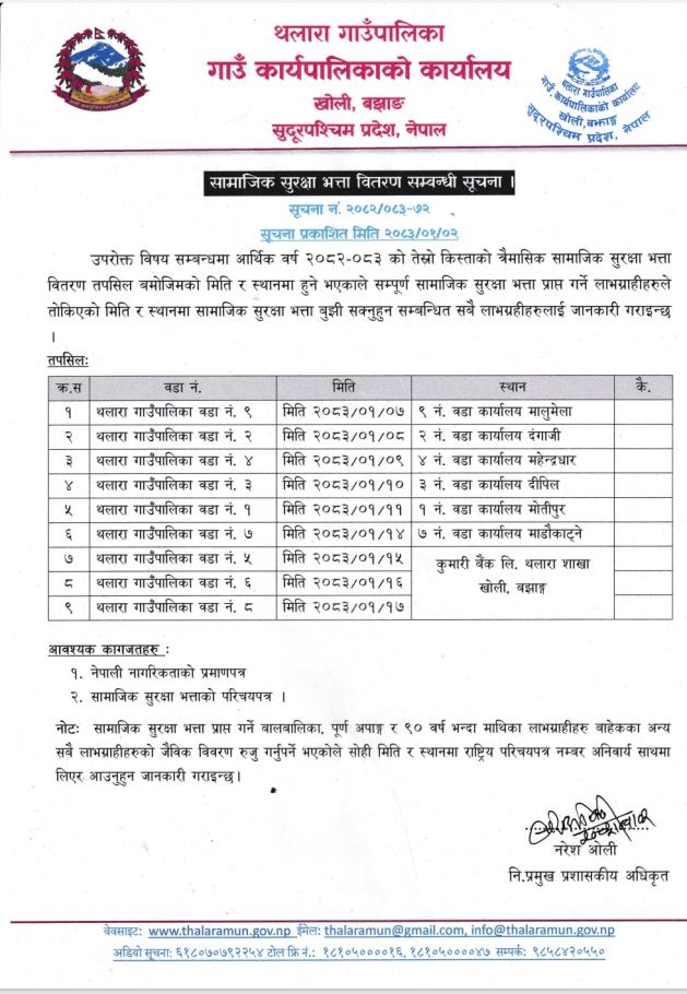 » २०८२ तेस्रो त्रैमासिक सामाजिक सुरक्षा भत्ता वितरण सम्बन्धी सूचना।
