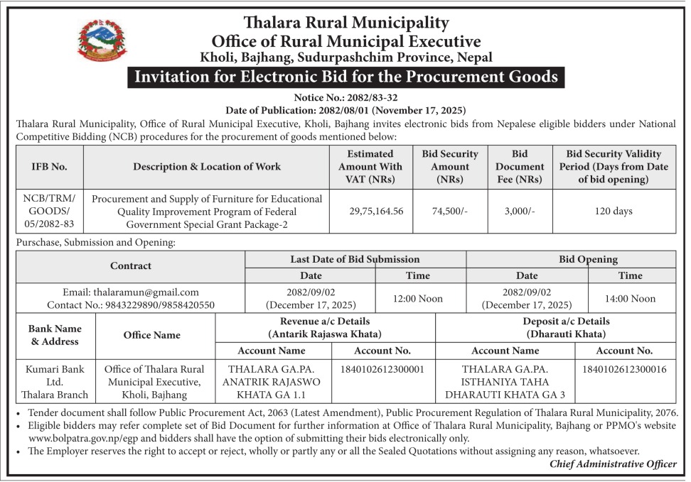 सार्वजनिक खरिद/बोलपत्र सूचना