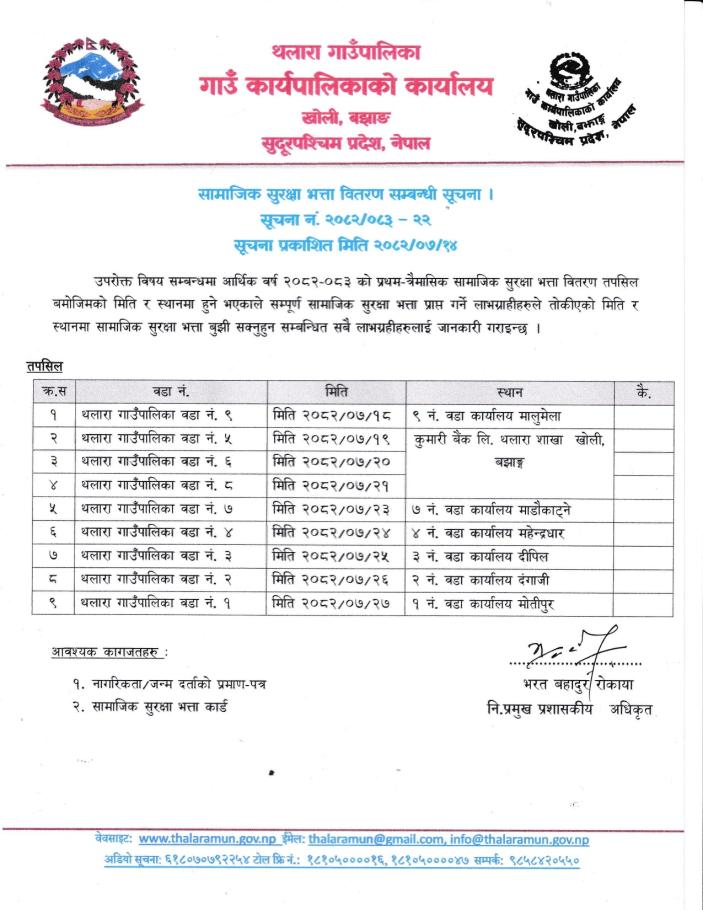 सामाजिक सुरक्षा भत्ता वितरण सम्बन्धी सूचना।